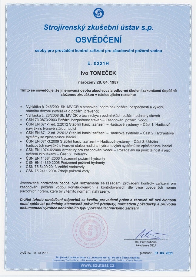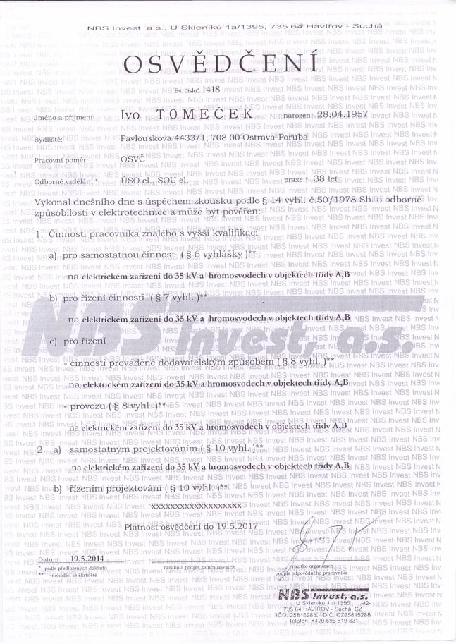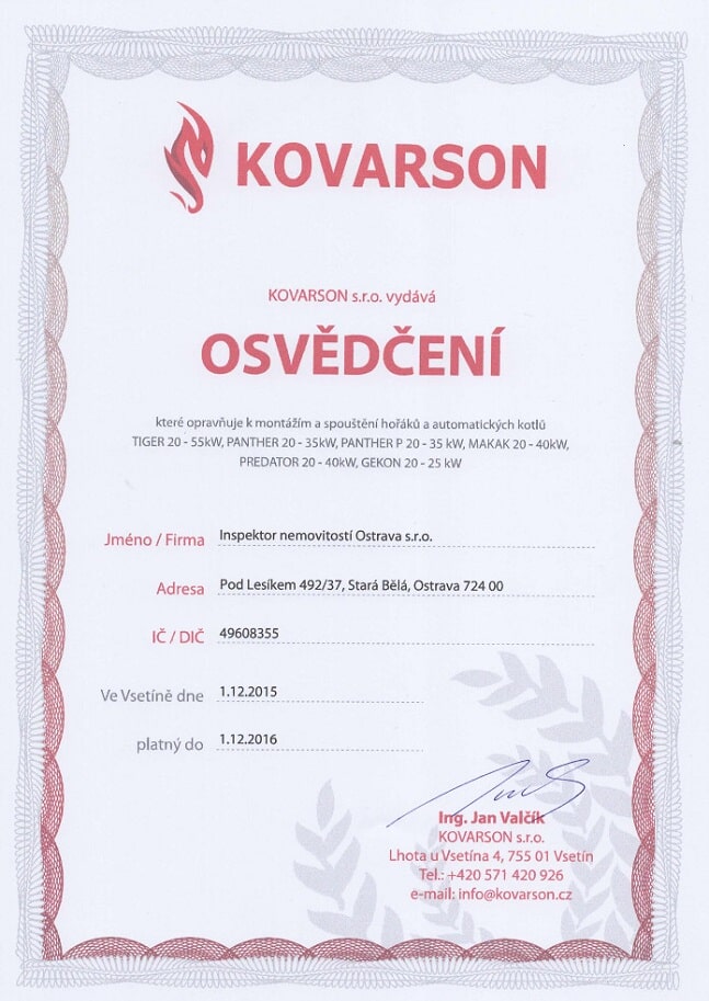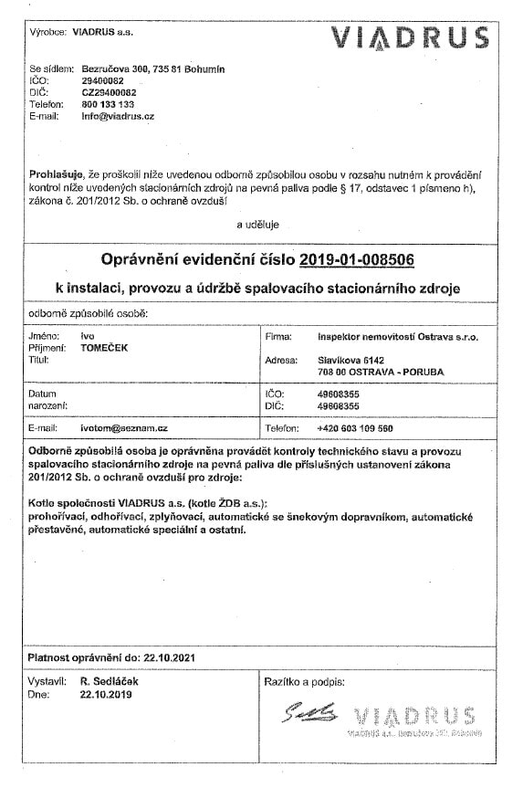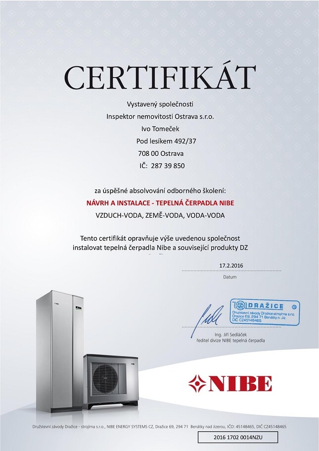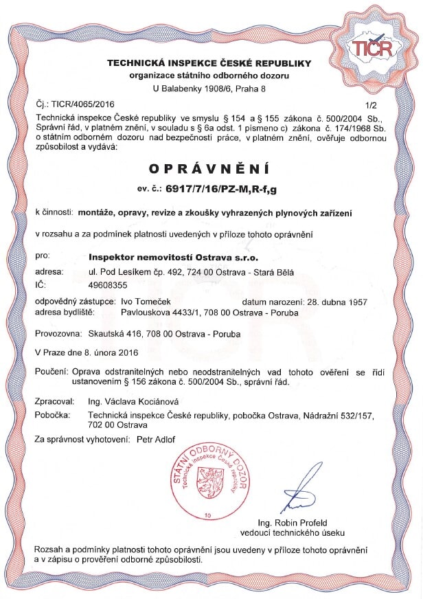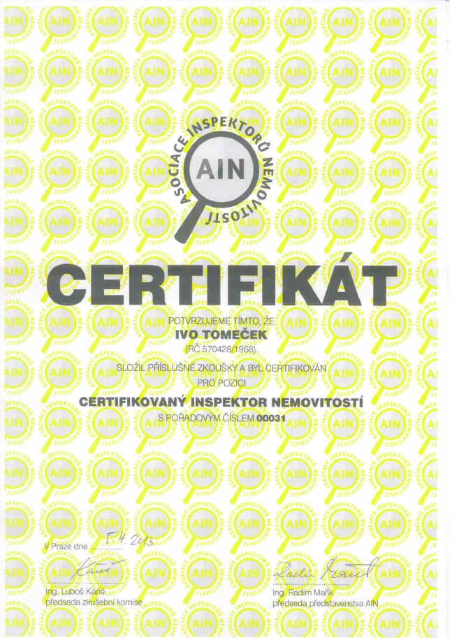 Vlastníme certifikáty a osvědčení potřebné pro inspekci nemovitostí
