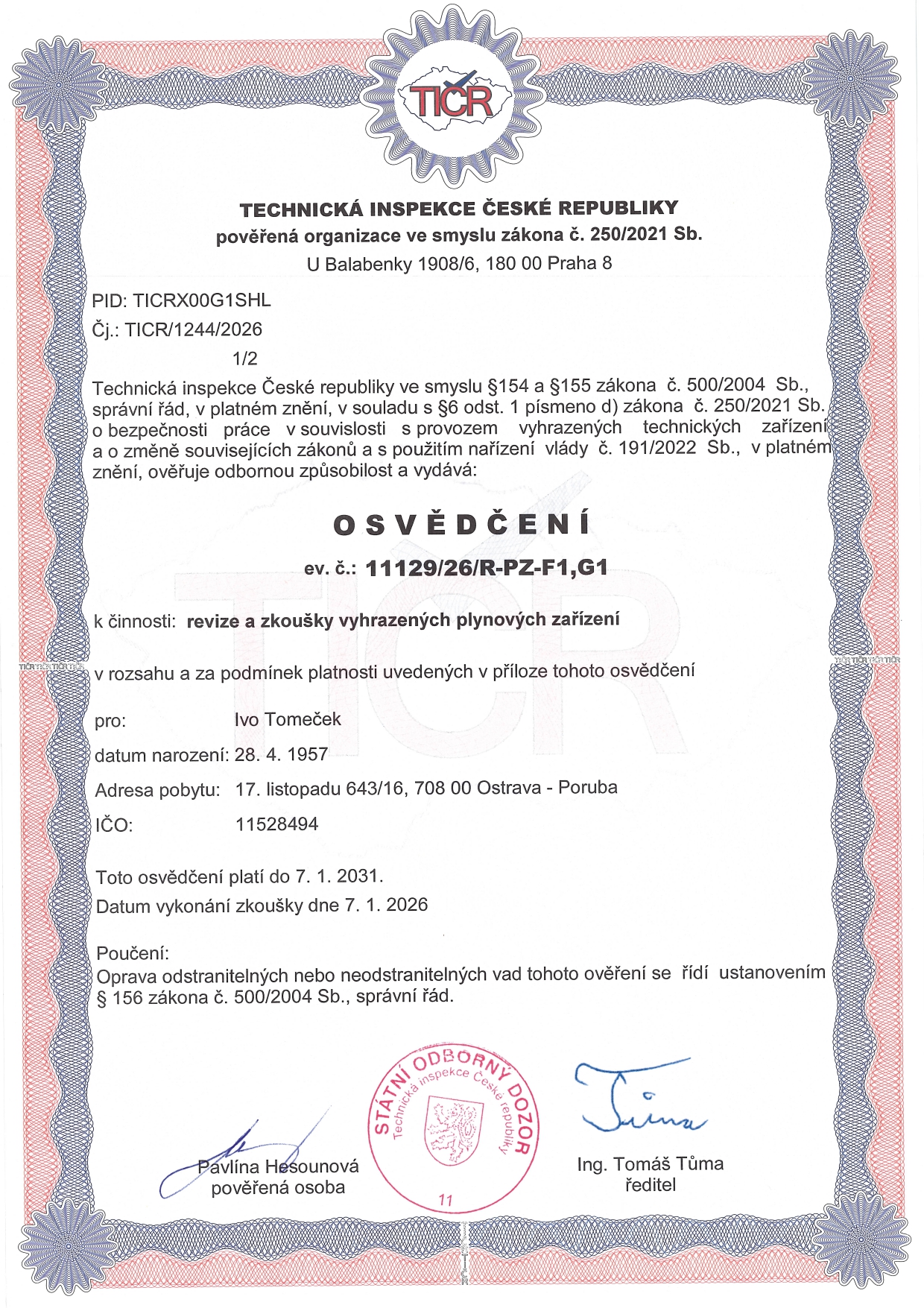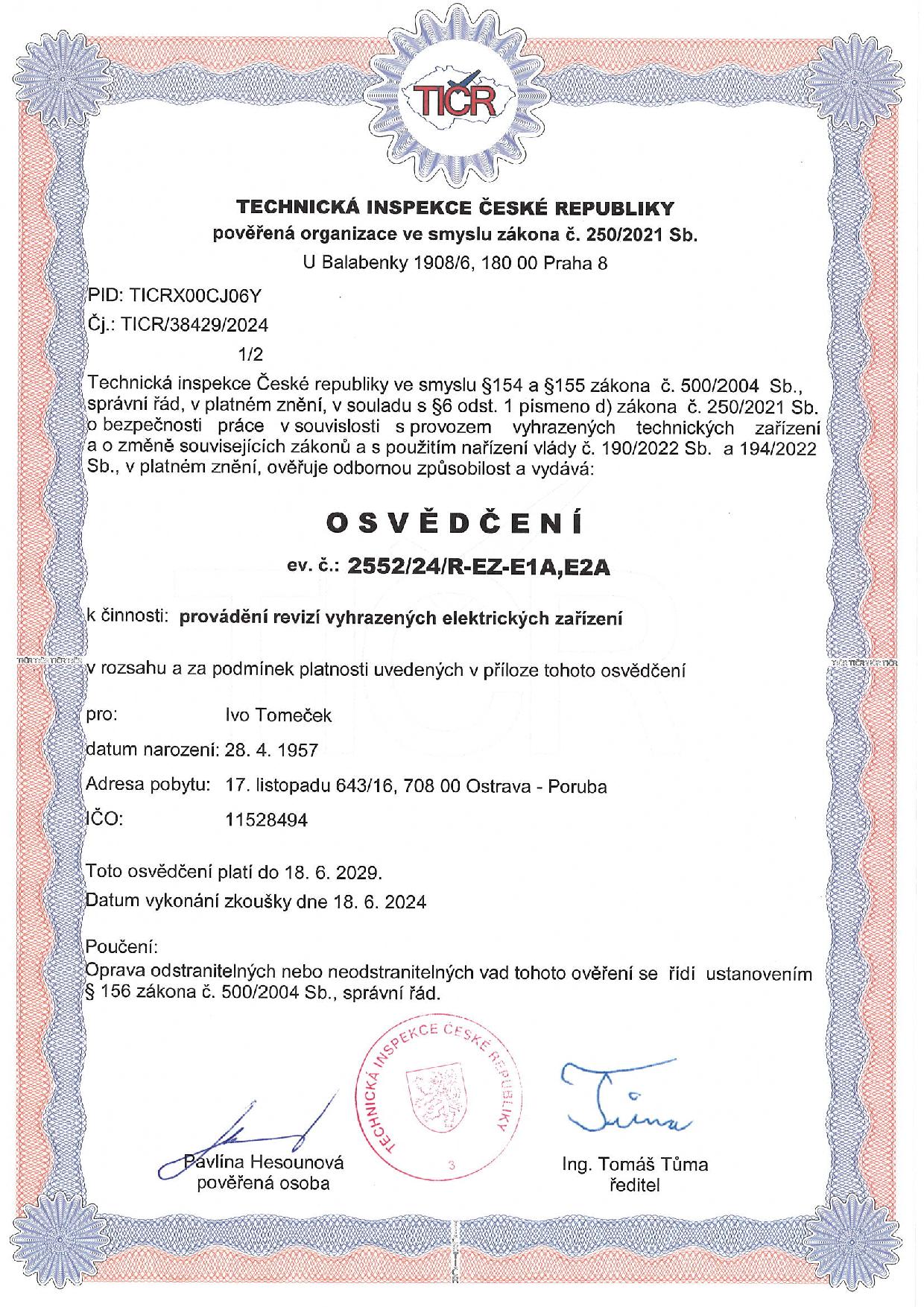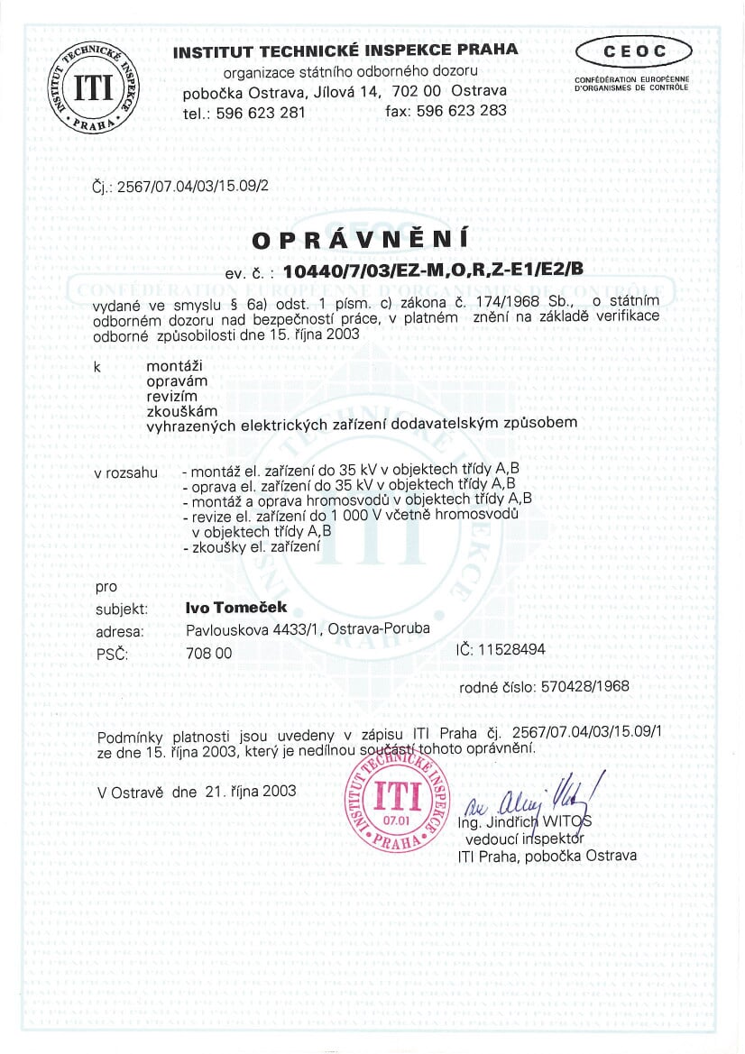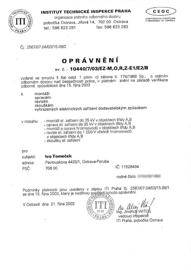 Vlastníme certifikáty a osvědčení potřebné pro inspekci nemovitostí