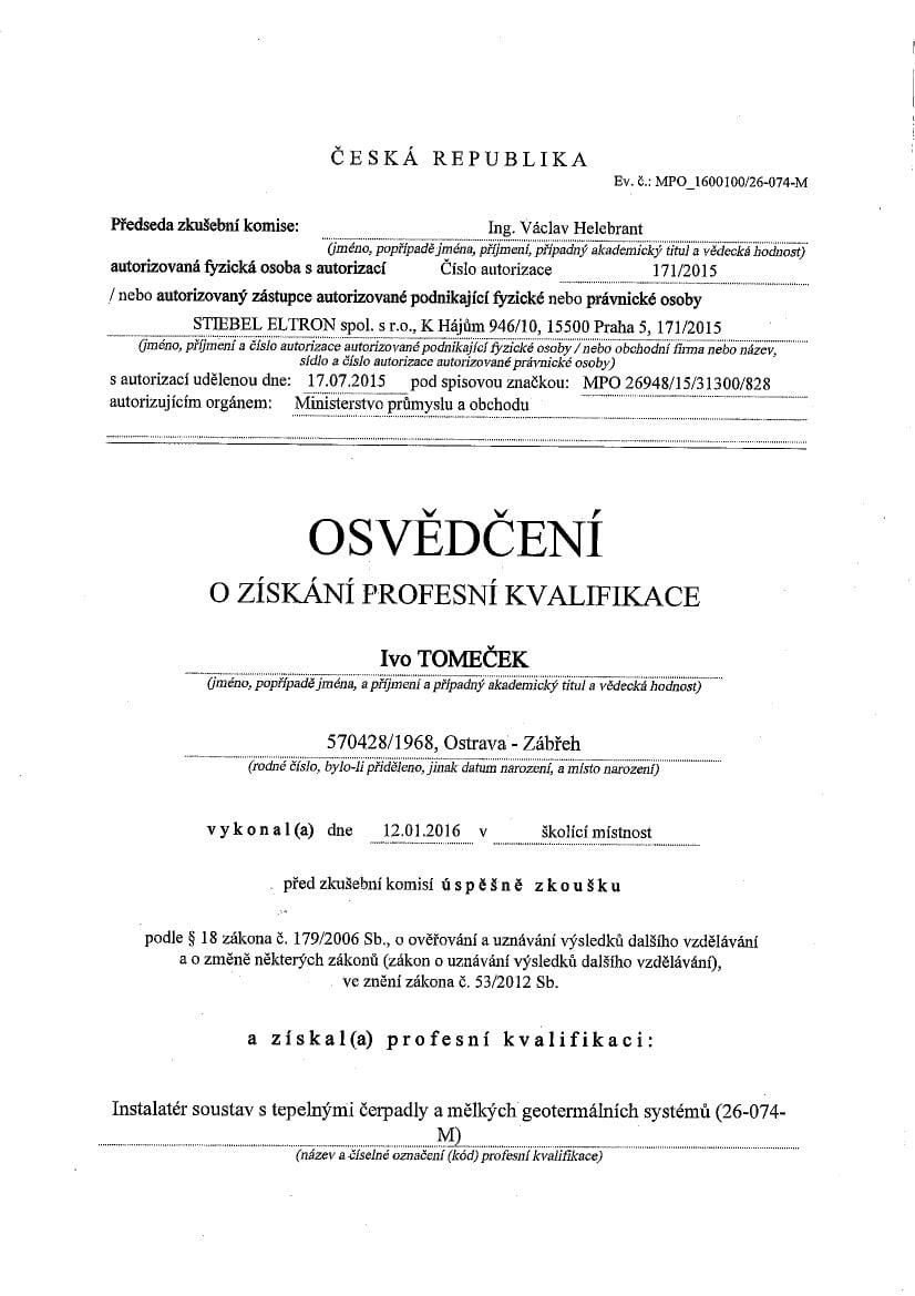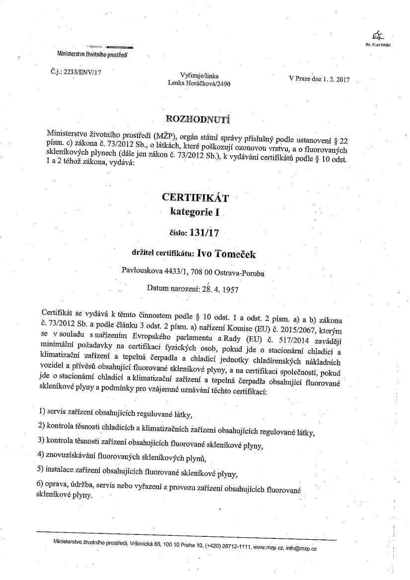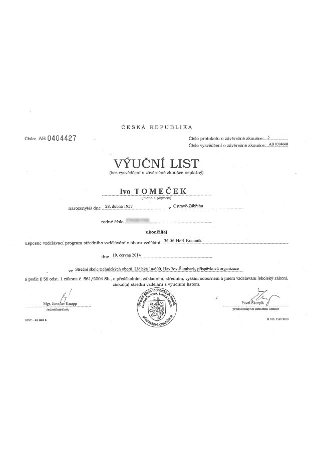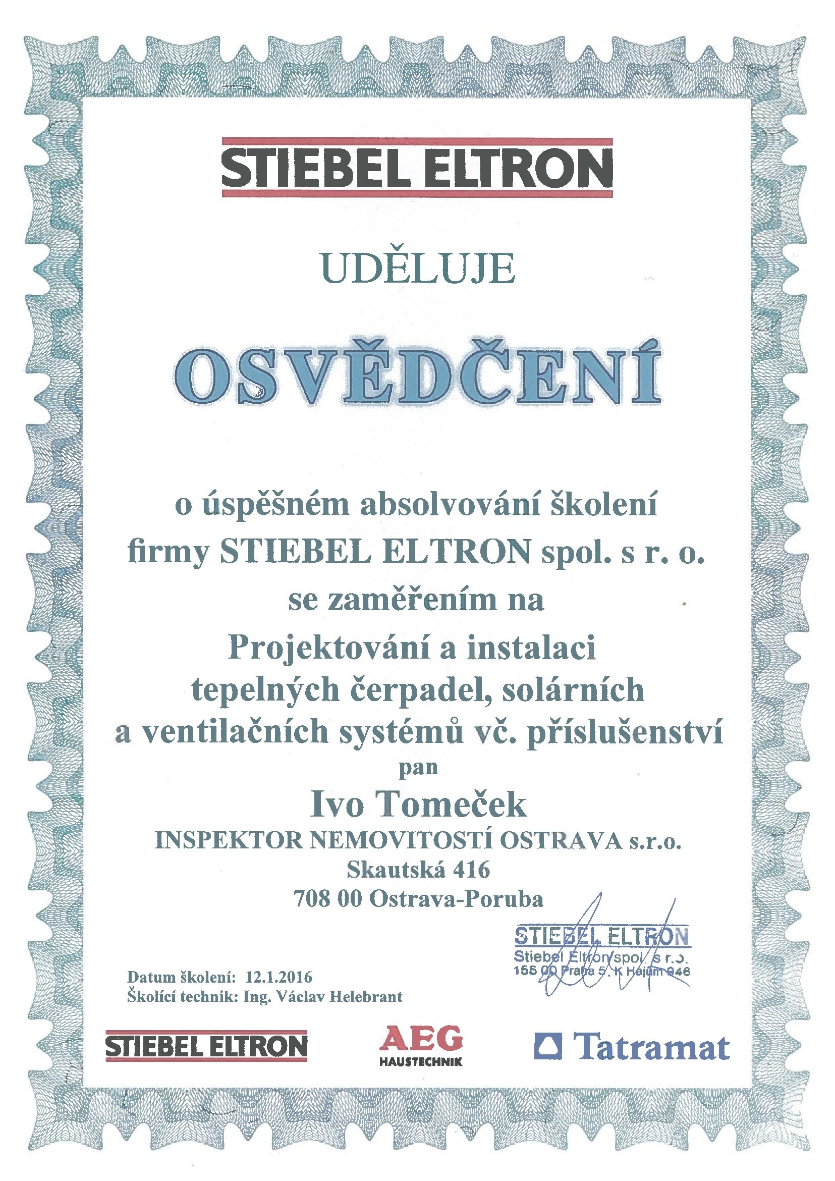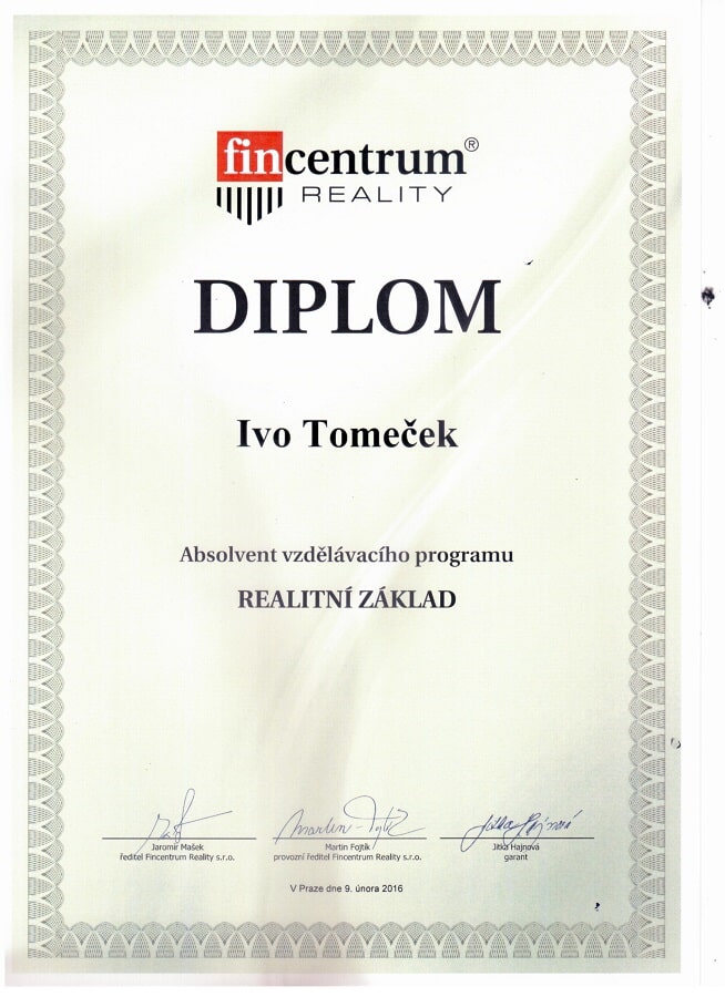 majitel – inspektor nemovitostí: absolvoval školení Certifikovaného inspektora nemovitostí v Praze a Brně u firmy Nemopas pro oblast Ostrava a je členem Asociace inspektorů nemovitostí (AIN), která je garantem odbornosti všech “certifikovaných inspektorů nemovitostí v ČR”. - spolupracuje s realitní kanceláří FIN CENTRUM REALITY