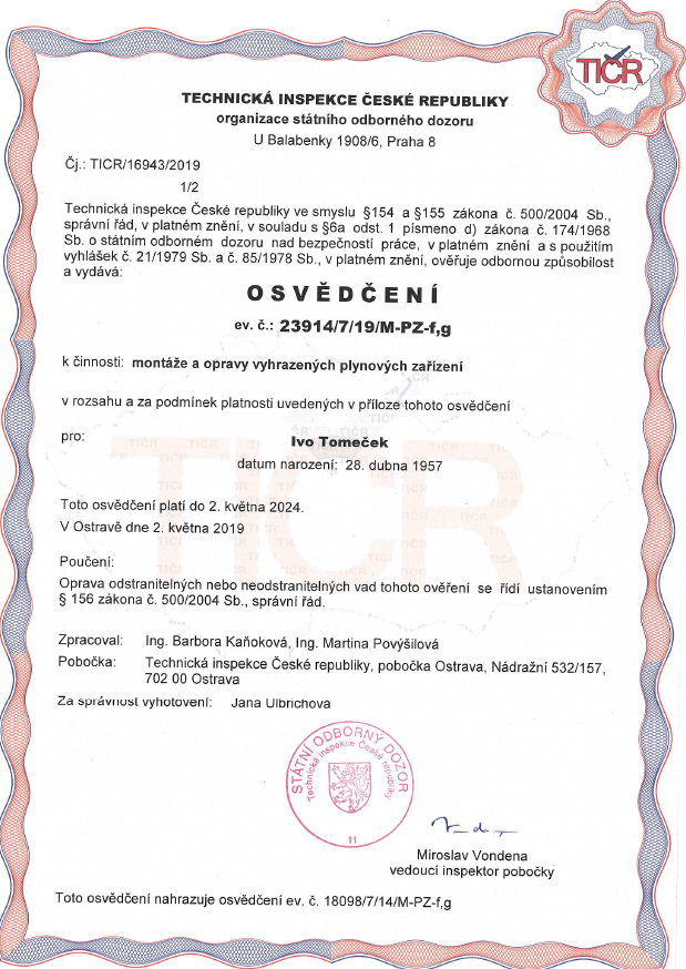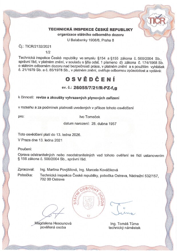 - zajišťujeme kompletní revize plynu a