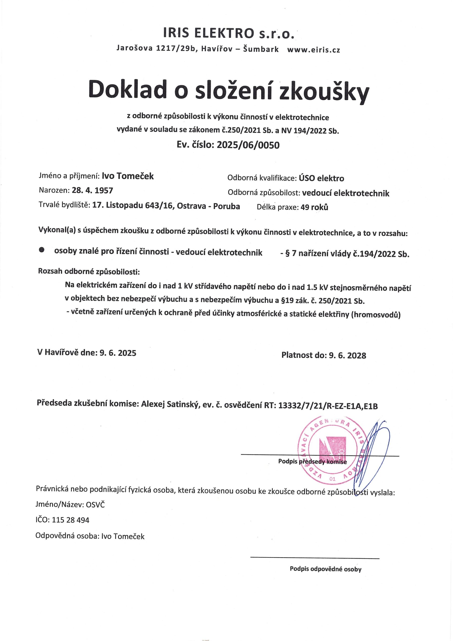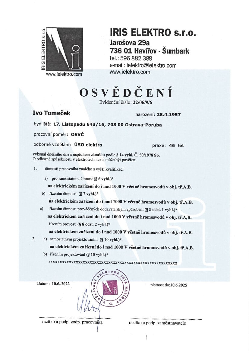 - revize elektro – VN, NN