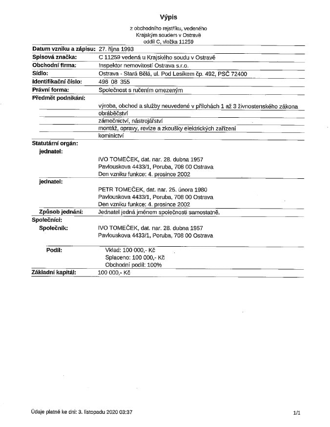 INSPEKTOR NEMOVITOSTÍ OSTRAVA s.r.o.