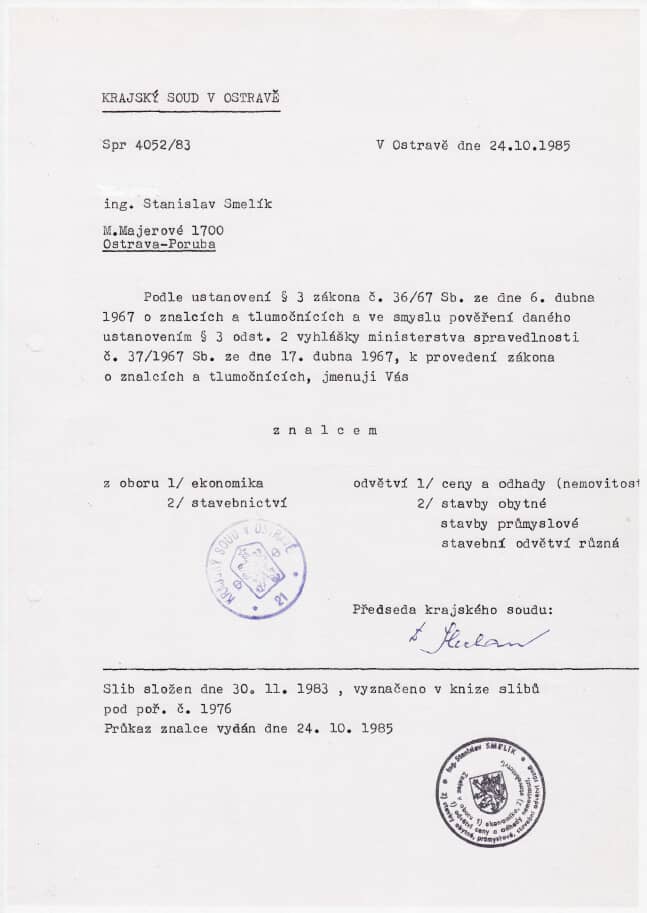 inspektor nemovitostí a soudní znalec ověřený Krajským soudem v Ostravě